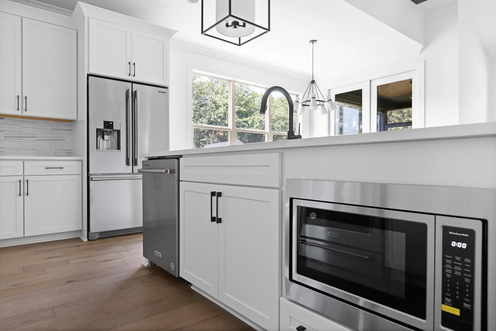 Fox Hollow is a hillside cottage built in 2022 in the North Shore Heights neighborhood. This luxury home perfectly balances coziness and space. Rich wood tones, granite countertops, and playful tile accents bring warmth and character to every room. The bright white kitchen—with its patterned backsplash, stainless steel appliances, and generous island—flows effortlessly into a welcoming living area anchored by a hand-stacked brick fireplace and a serene screened porch.